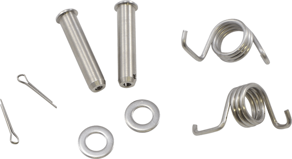 Vključuje dve nadomestni vzmeti OEM, dva nadomestna zatiča OEM, dve podložki in dve ključi